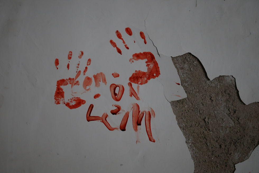 I did not spend too much time on photography. I kind of came back and wrote this after we finished the shooting. Therefore, I only took three pictures that we left behind in the warehouse: one of an axe lying on the ground and one with a blood print on the wall. These items are supposed to be iconic in our MV.