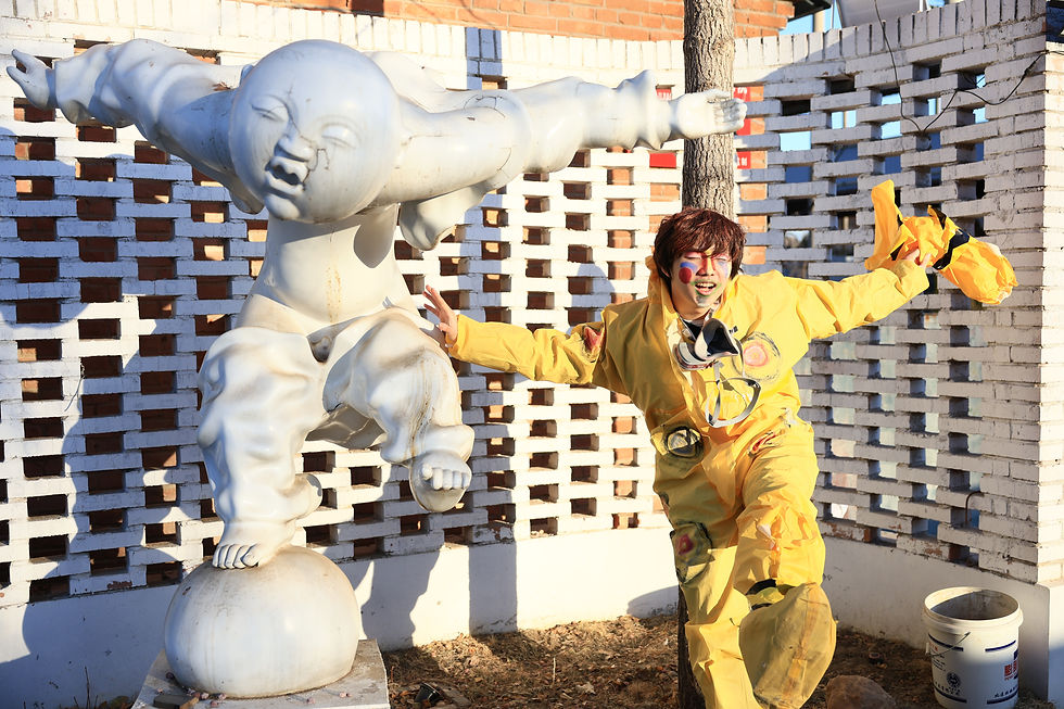 I thought about putting Louis inside our production, but I feel like our key selling point of this MV is not about an individual artist but our ideology. People aren't gonna remember Louis's face, but they'll remember our bizarre style. So, that's why I did not include a portrait of the artist.