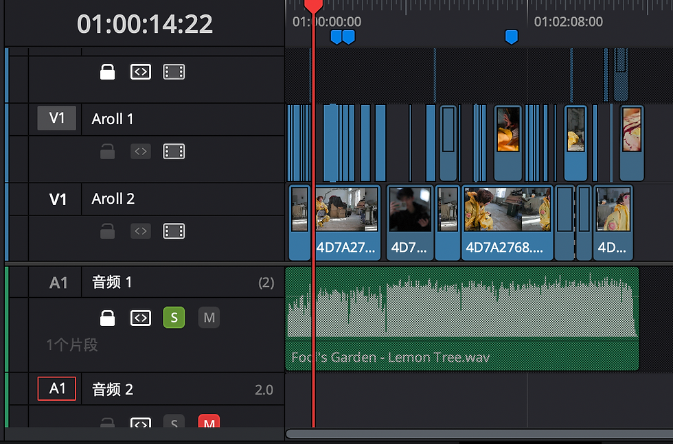 I accomplished the editing with two timelines. However, leaving everything on two tracks is probably not a good habit, which will drive the colour-grading guy crazy. But I'm the colour-grading guy, so I don't care.